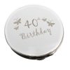 This silver finish round compact features a butterfly design with the wording ’50th Birthday’ as standard text.