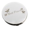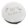 This silver finish round compact features a butterfly design with the wording ’60th Birthday’ is standard text.
