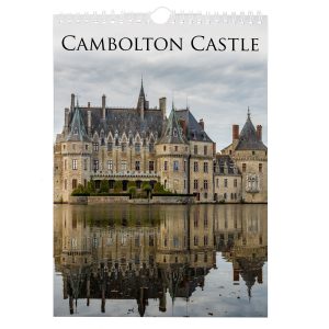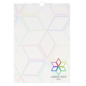 - Each printed wall calendar has a white wirebound fitting at the top, with a hanging loop.