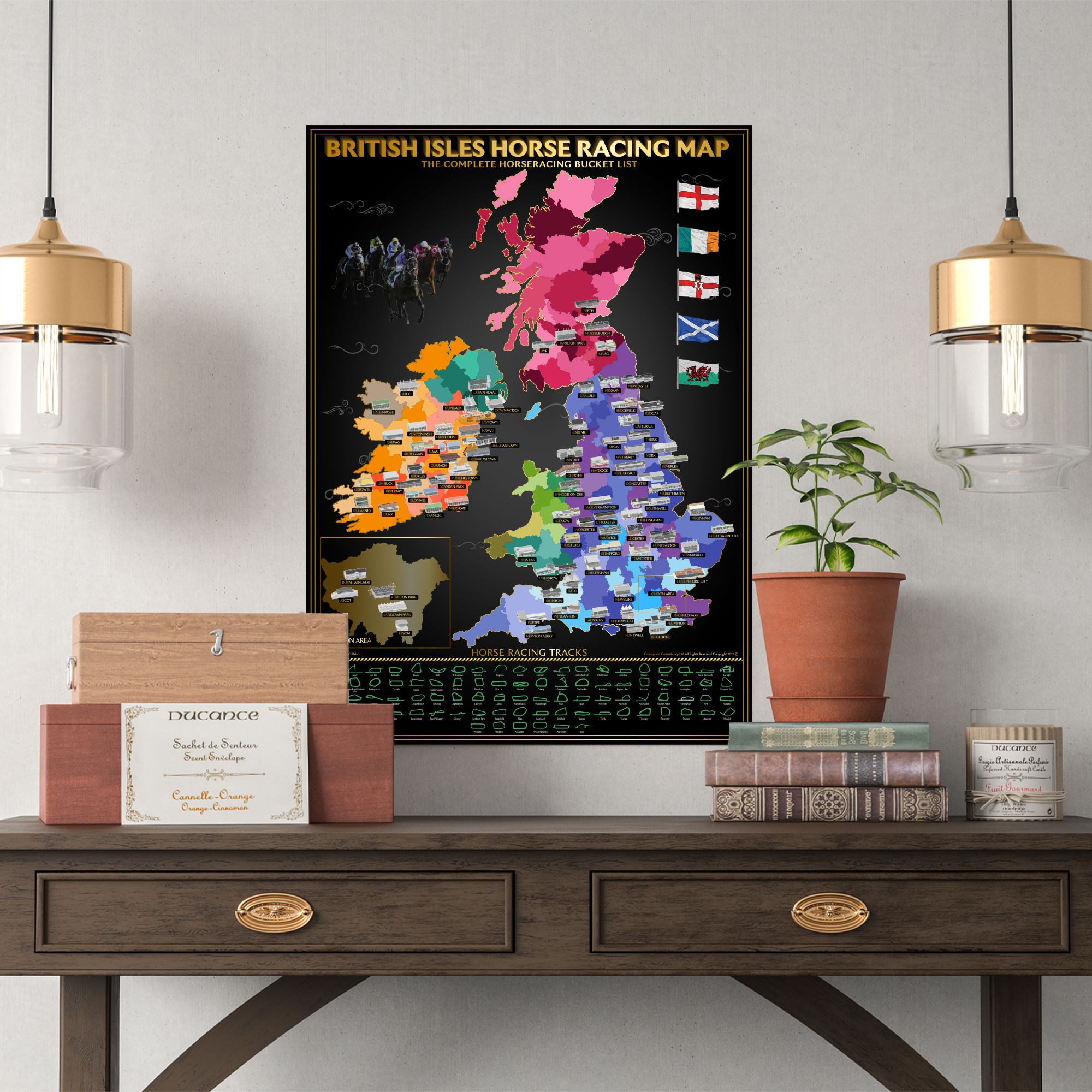 - The British Isles horse racing map is a great way to capture every track you’ve been to.
