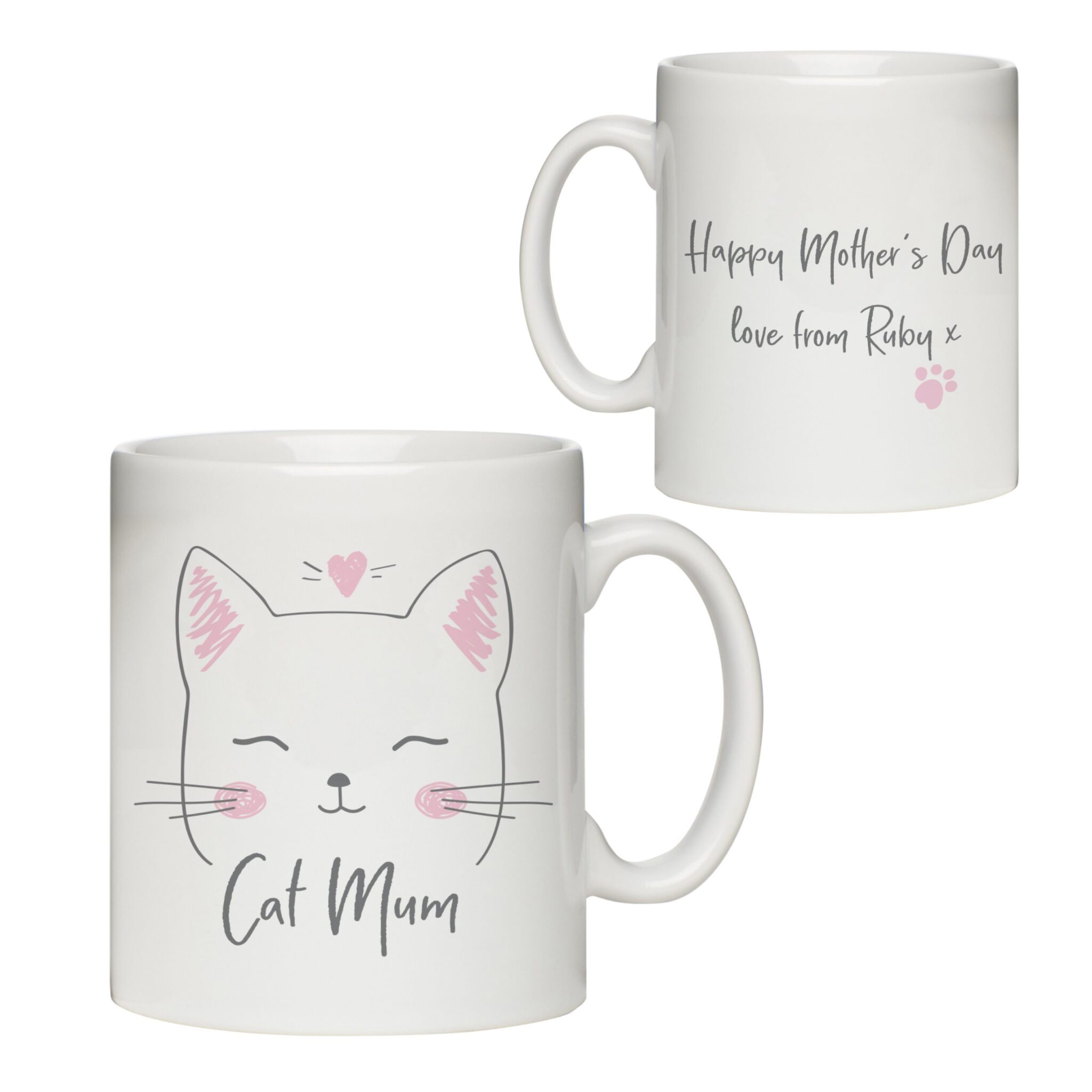 Make a cat Mum’s day with this personalised 11oz white mug. Add a special message from yourself or their fur baby on the reverse of the mug using a maximum of 25 characters per line over three lines. It is 9cm tall, 11cm wide (including handle) and 8cm diameter. We recommend hand wash only.