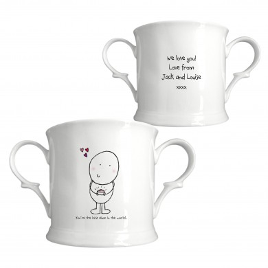 Say ‘Happy Mother’s Day’ in style with this bespoke china loving cup. Our Chilli and Bubbles cartoon character is printed directly onto the front letting Mum know how great she is, and we add an extra touch to the gift by including your own Mother’s day message on the reverse Mother’s day may only fall one Sunday a year, but with this thoughtful gift Mum will feel cherished all year round as she can choose to use or display this gift wherever she wants.