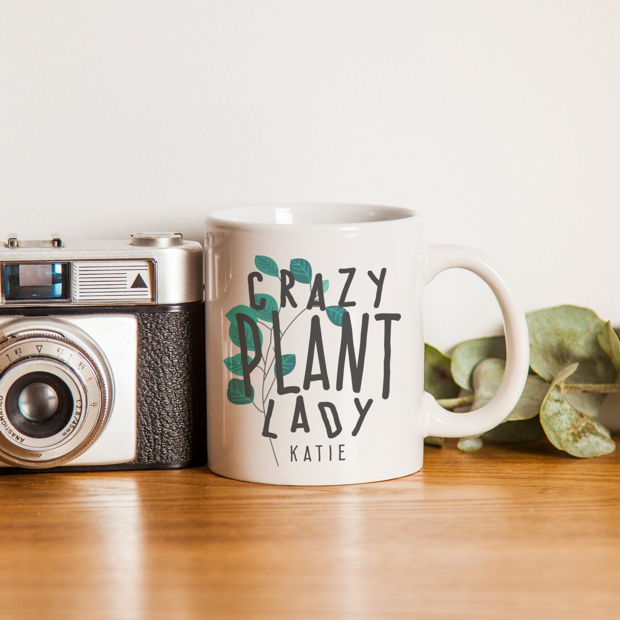 Make a plant lovers day with this personalised 11oz white mug. Add their name using a maximum of 15 characters below the fixed text ?Crazy Plant Lady?. Please note the name will always appear in capitals. It is 9cm tall, 11cm wide (including handle) and 8cm diameter. We recommend hand wash only.
