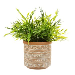 The Geo Terracotta planter Combines a modern geometric print in a fresh white with a warm terracotta shade.
