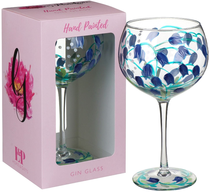 The large gin glass features elegantly designed bluebells, which are each painted in exquisite detail. The bluebells feature on the bowl of the glass as well as on the base, making this glass really stand out!