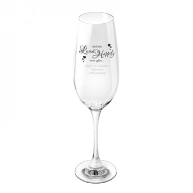 Made from fine crystal, this elegant champagne flute is an ideal way to celebrate a special occasion with a loving couple. Perfect for weddings, anniversaries, valentines or engagements. Show someone you love how much you care by including your own heartfelt message which we engrave under the Happily Ever after design. Team this gift with a bottle of bubbly or give the flute on its own to mark your special occasion.