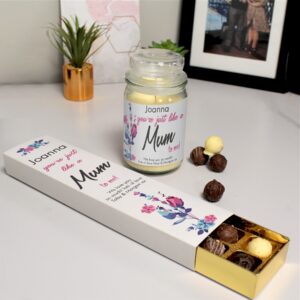Looking for a gift that say Happy Mother’s Day to a person that is just like a Mum to you? Then look no further! This set of personalised luxury truffles and personalised Candle Jar jar is sure to hit the mark. The beautifully smooth and rich chocolate truffles are perfectly paired with the French vanilla scented Candle Jar. The labels of these beautiful gifts are adorned with the recipient’s name and a message from you, making this a first-class gift they won’t soon forget! Please Note – ‘You’re Just Like A Mum To Me!’ is fixed Text.