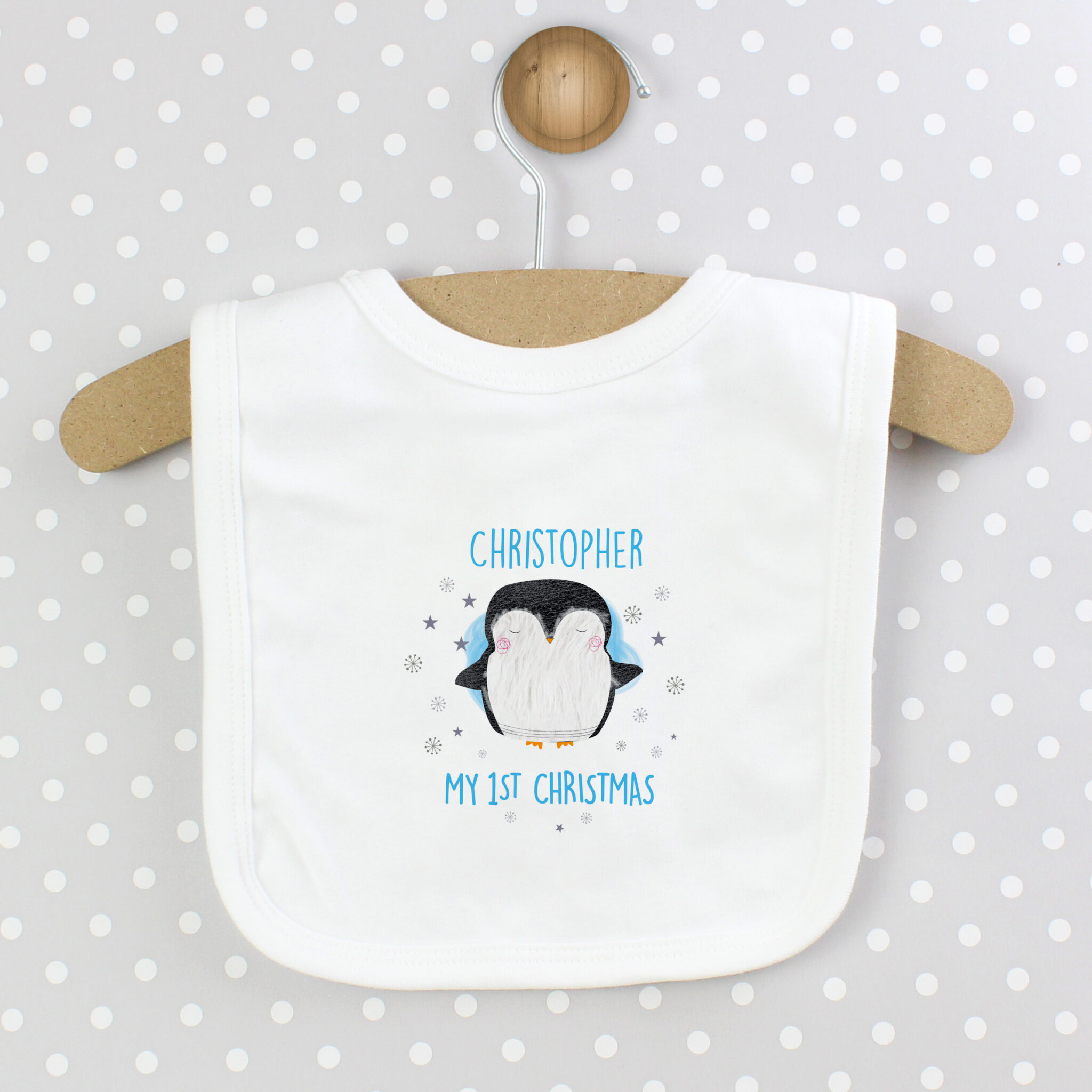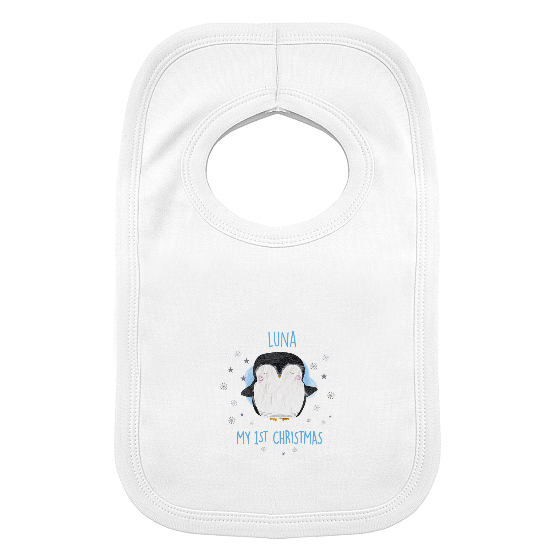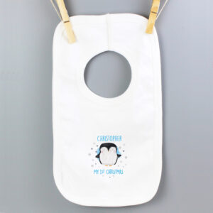 This adorable Personalised 1st Christmas Penguin Bib is perfect for celebrating your babys magical first Christmas.