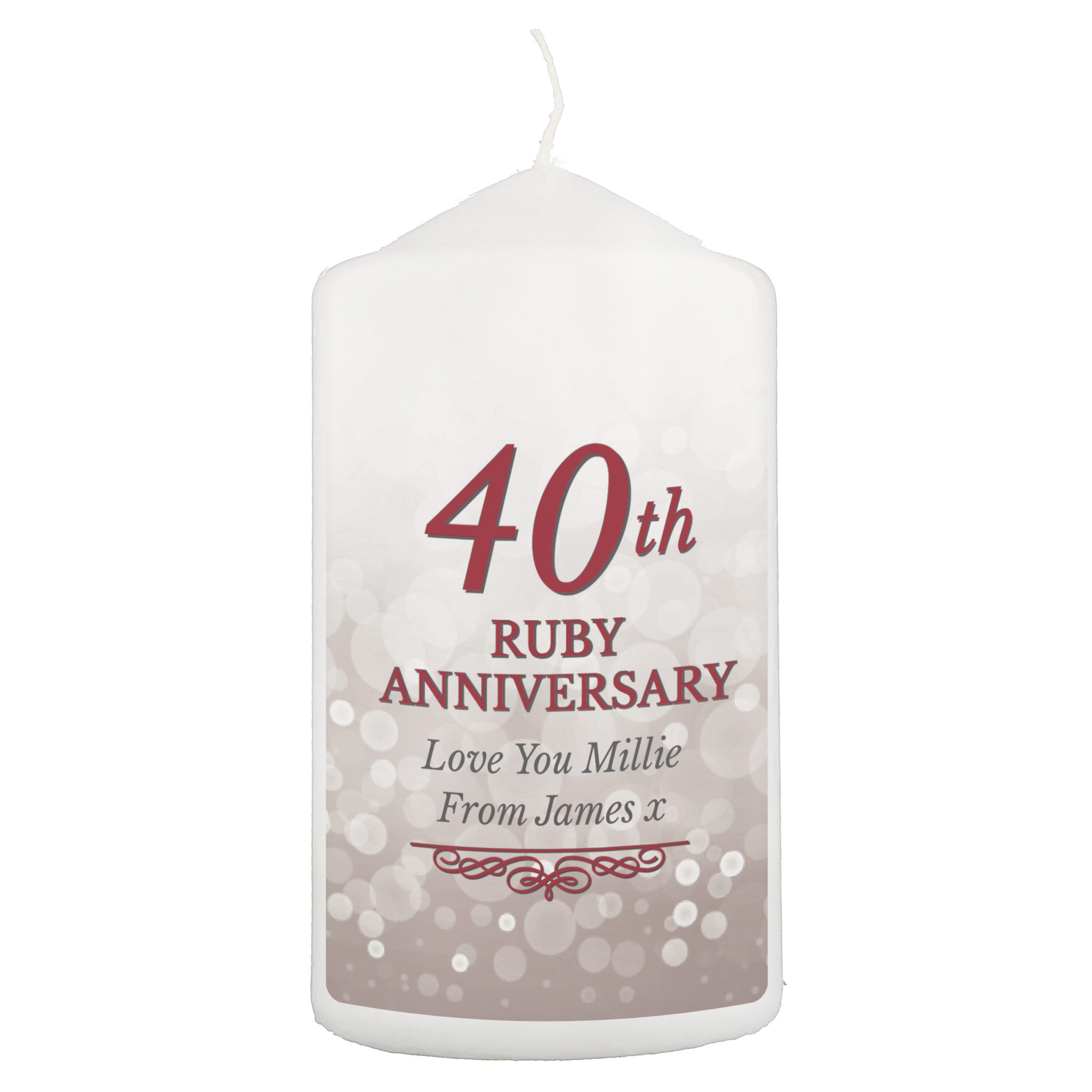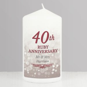 Line 2- Up to 25 characters (please refrain from using block capitals as this may make the personalisation hard to read) Please note: “40th Ruby Anniversary” is fixed text and cannot be changed. - Candle is presented in organza bag.