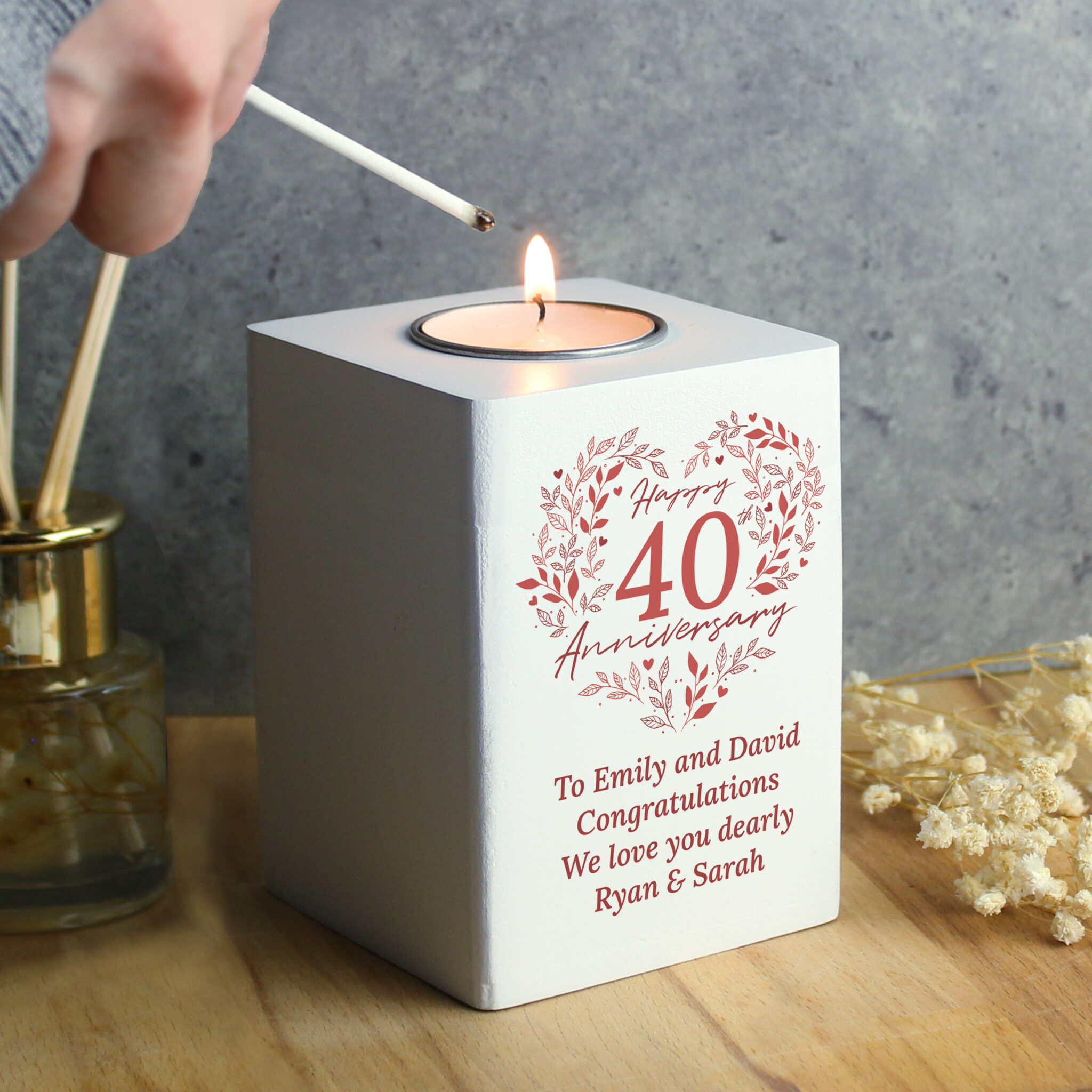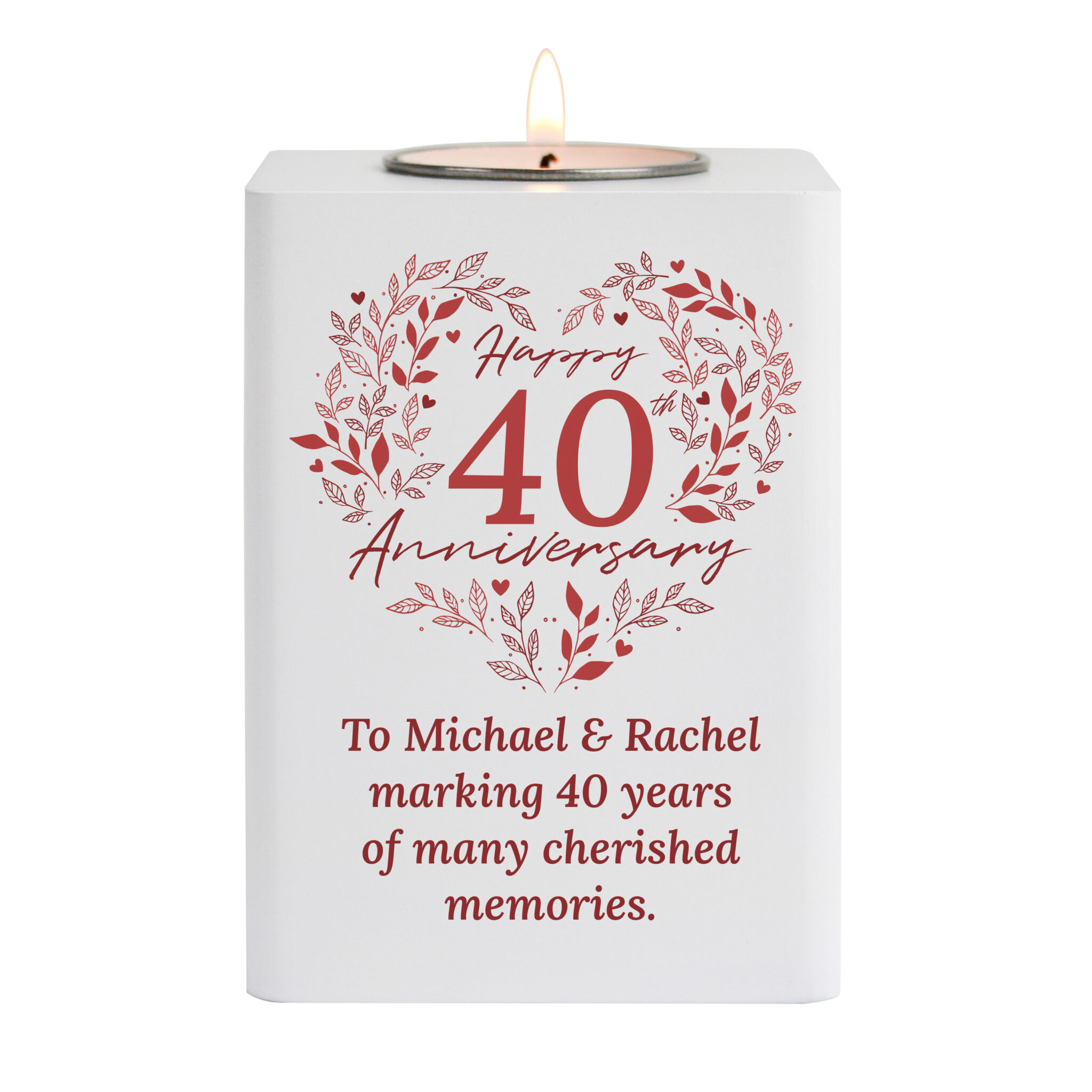 - Featuring our “40th Anniversary” design, you can then personalise with a special message, over 4 lines of 20 characters per line.