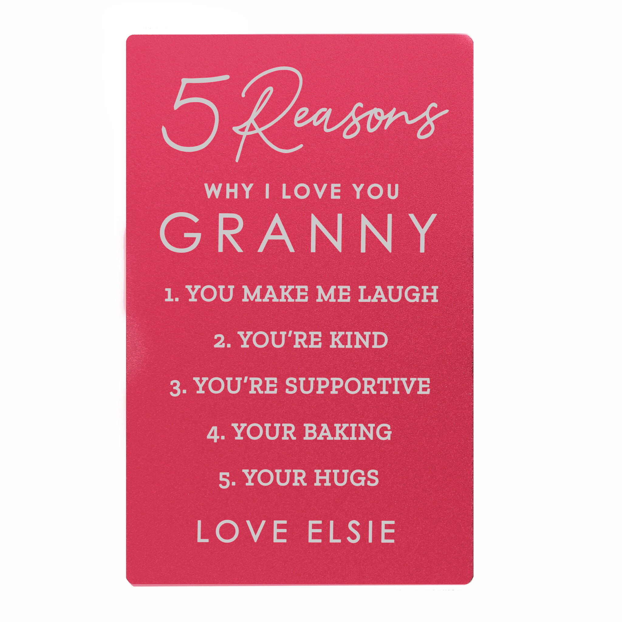 A great gift idea, this Personalised 5 Reasons Why I Love You Cerise Wallet Card is perfect for letting someone know youre always thinking of them.