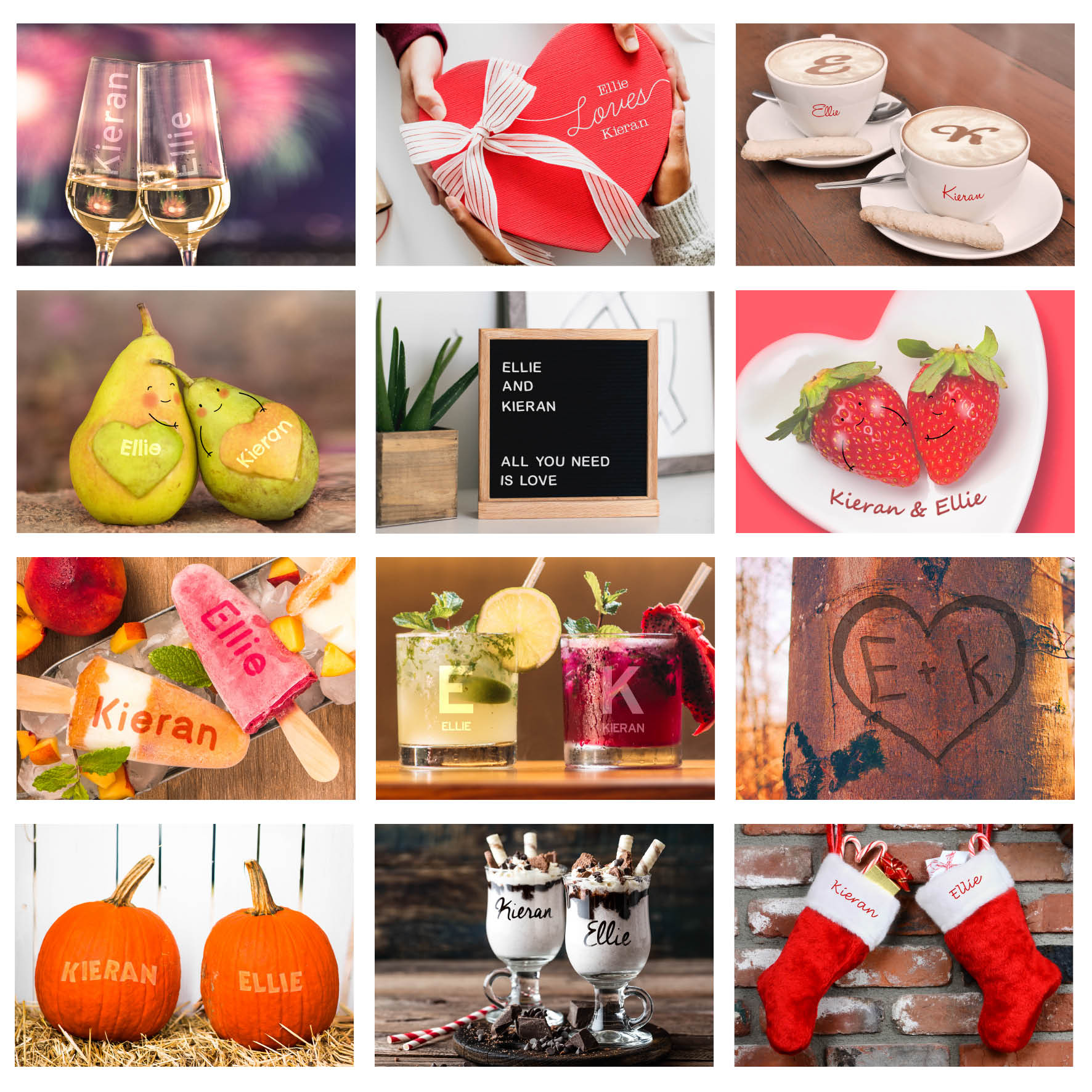 - Each image features both of their names, cleverly inserted.