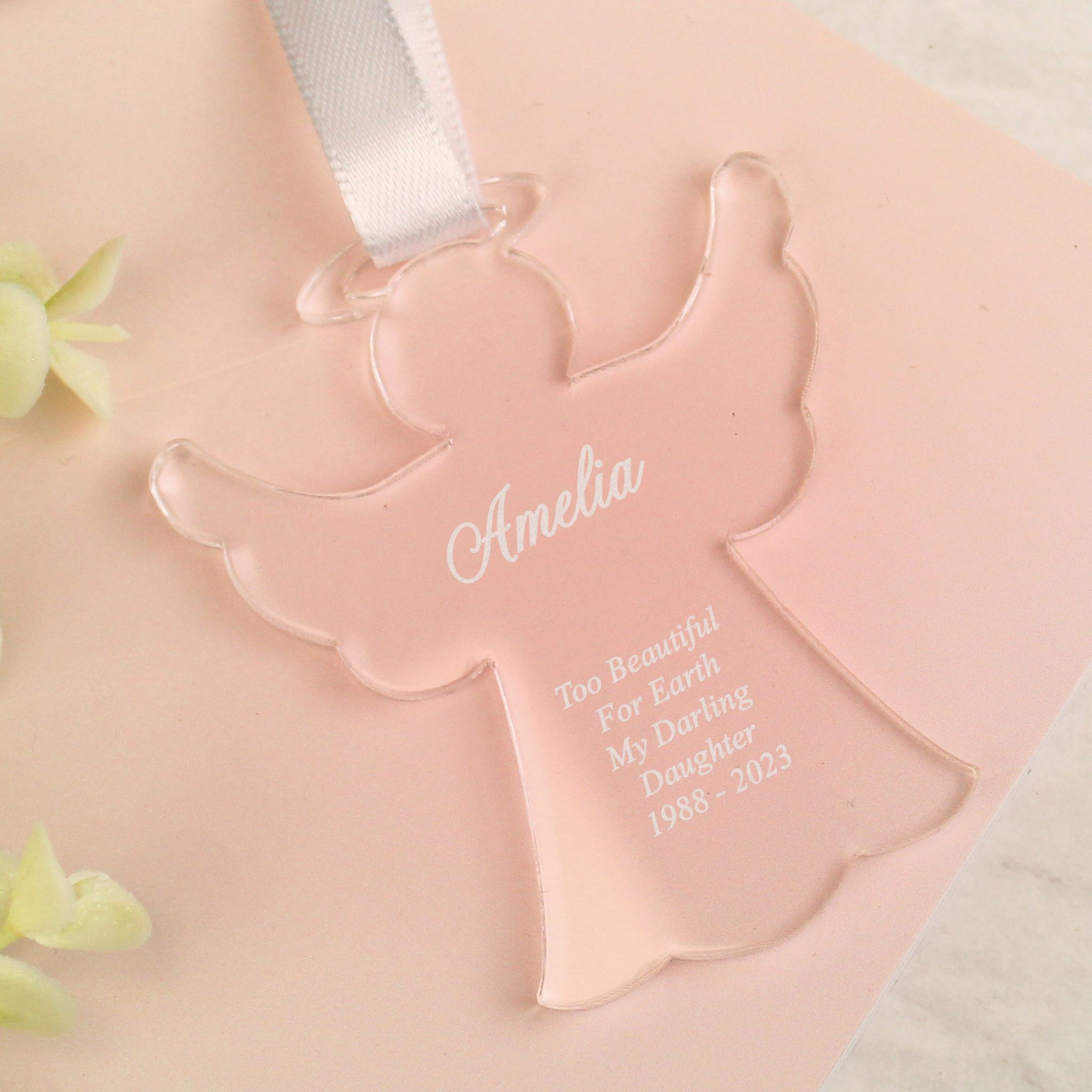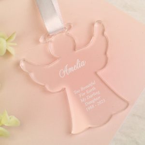 - Decoration comes supplied with white ribbon ready to hang/attach straight onto the tree/gift. Please ensure that the clear protective film has been removed from the acrylic prior to use. Ideal for Christmas, Wedding Favours, Gift Tags.