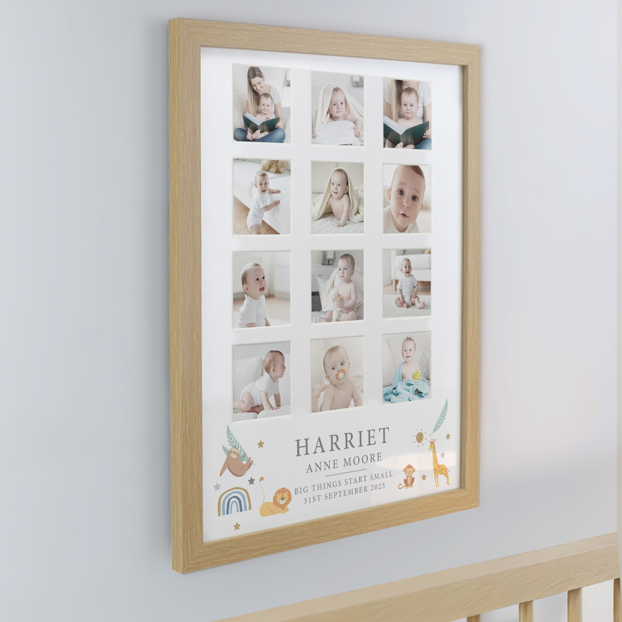 Line 4 – 25 characters Please note, all personalisation will appear in fixed UPPERCASE. - To finish this stylish piece of art each piece is mounted and framed in a large oak frame.