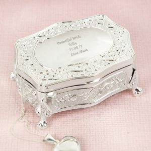 - This silver finish trinket box can be personalised with any message over 4 lines and up to 25 characters per line on the lid.