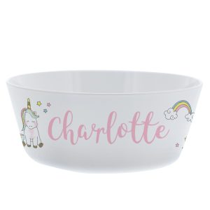 - Personalise this Baby Unicorn bowl with a name up to 12 characters long.