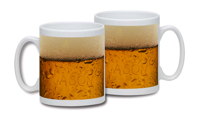 Wishful thinking for your dad. Every time he drinks tea or coffee from this mug he can imagine he’s enjoying a beer. The mug includes an image of a frothy brew, with your dad’s name appearing as contents of the nectar. The image appears on both sides of the 10oz, high gloss, ceramic mug. The mug has a scratch resistant finish and is safe in a dishwasher and a microwave.