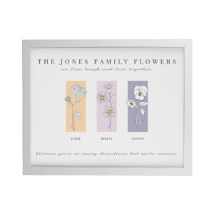 Be the first to review “Personalised Birth Flower Family of 3 White Framed Print” Cancel reply