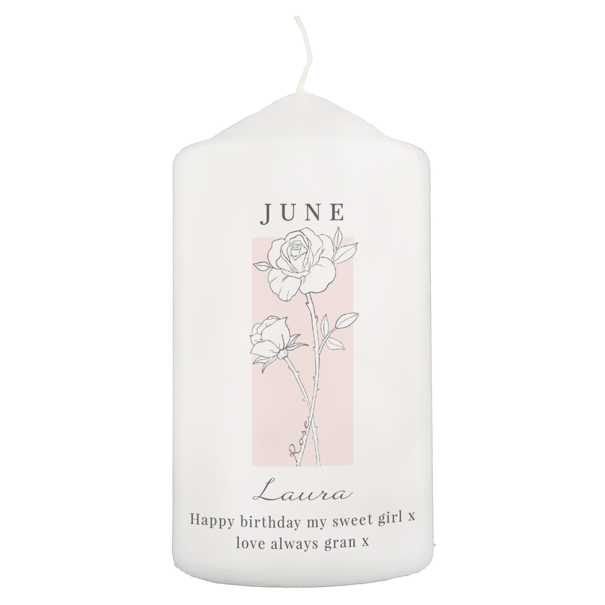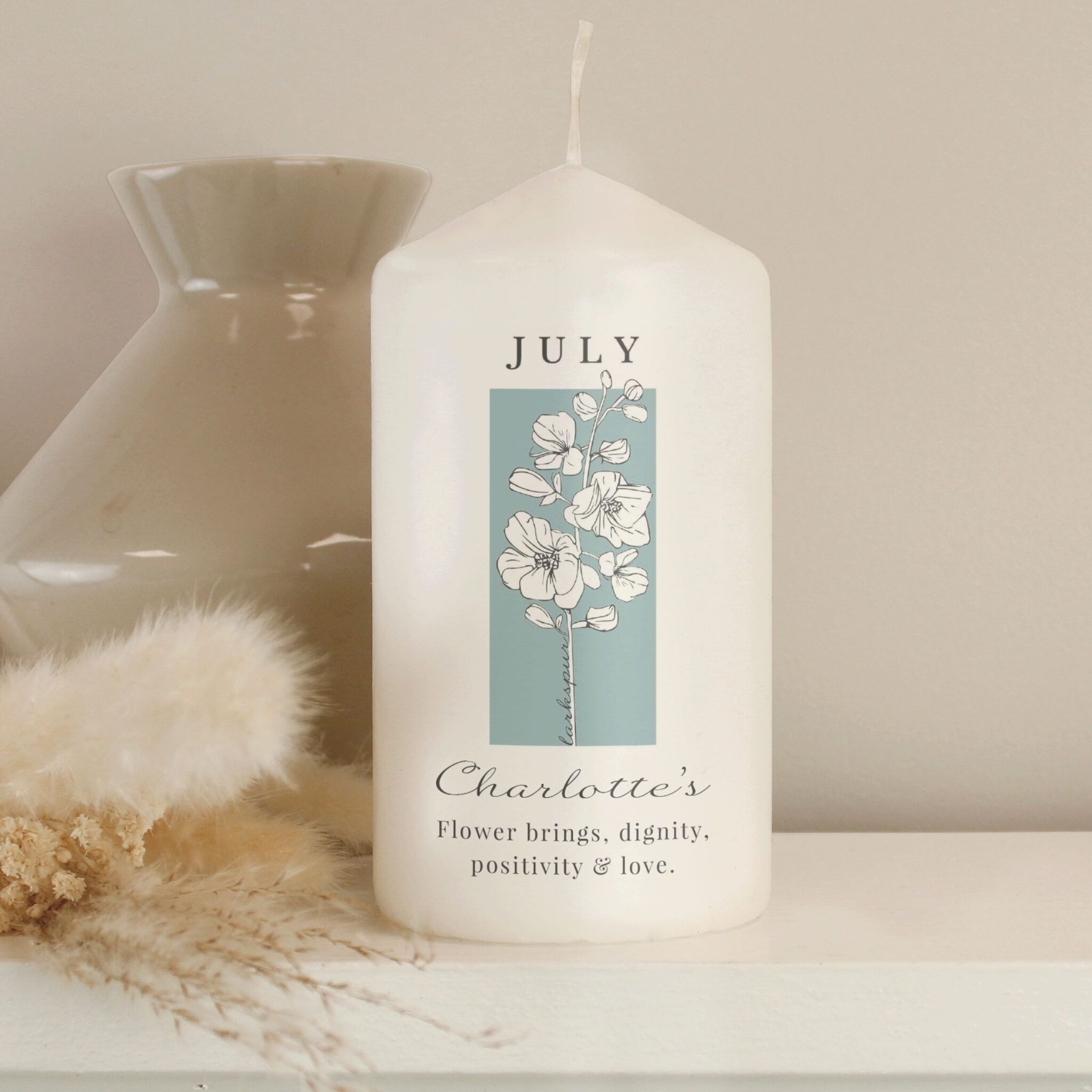 Personalised Birth Flower Pillar Candle