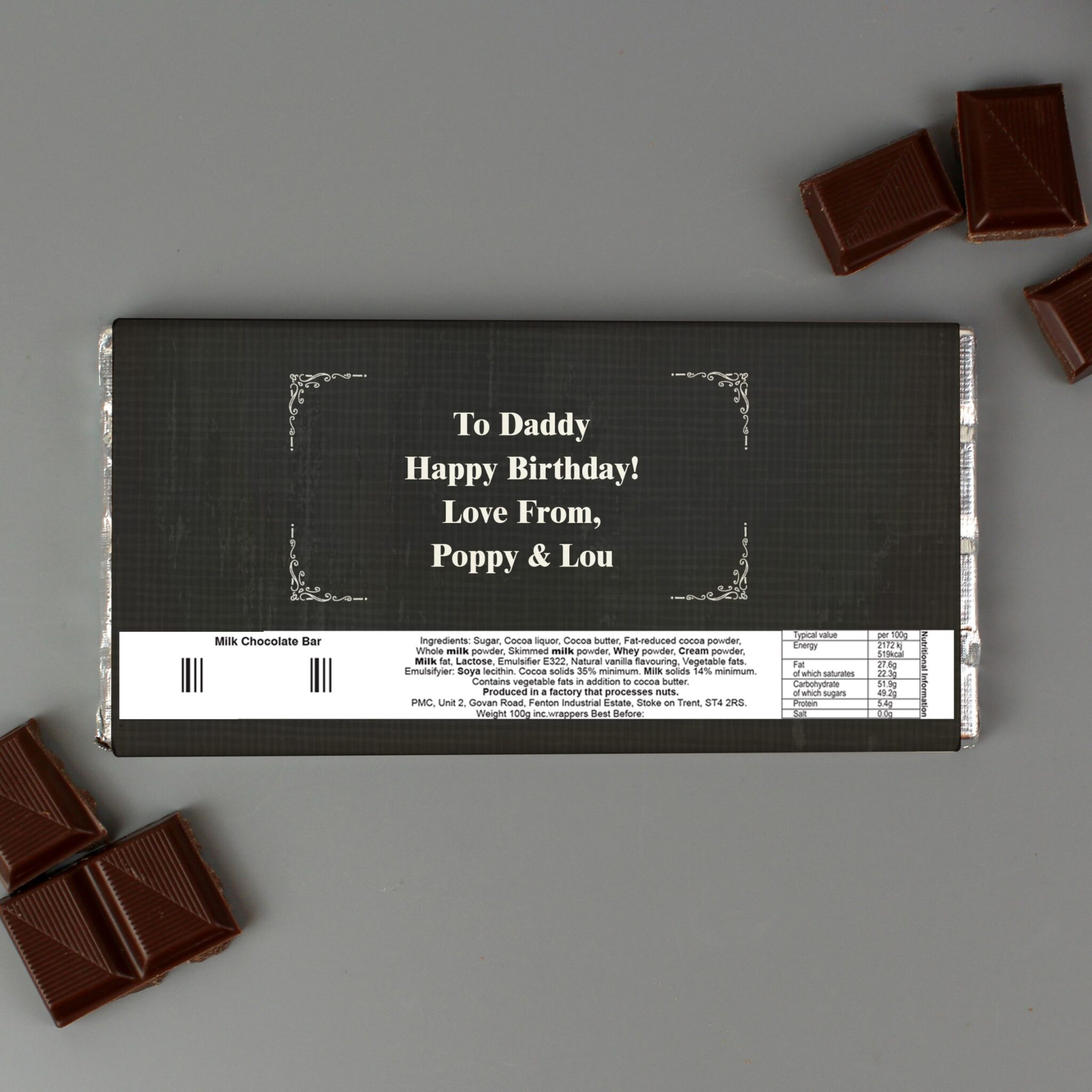 Personalise this chocolate bar with: