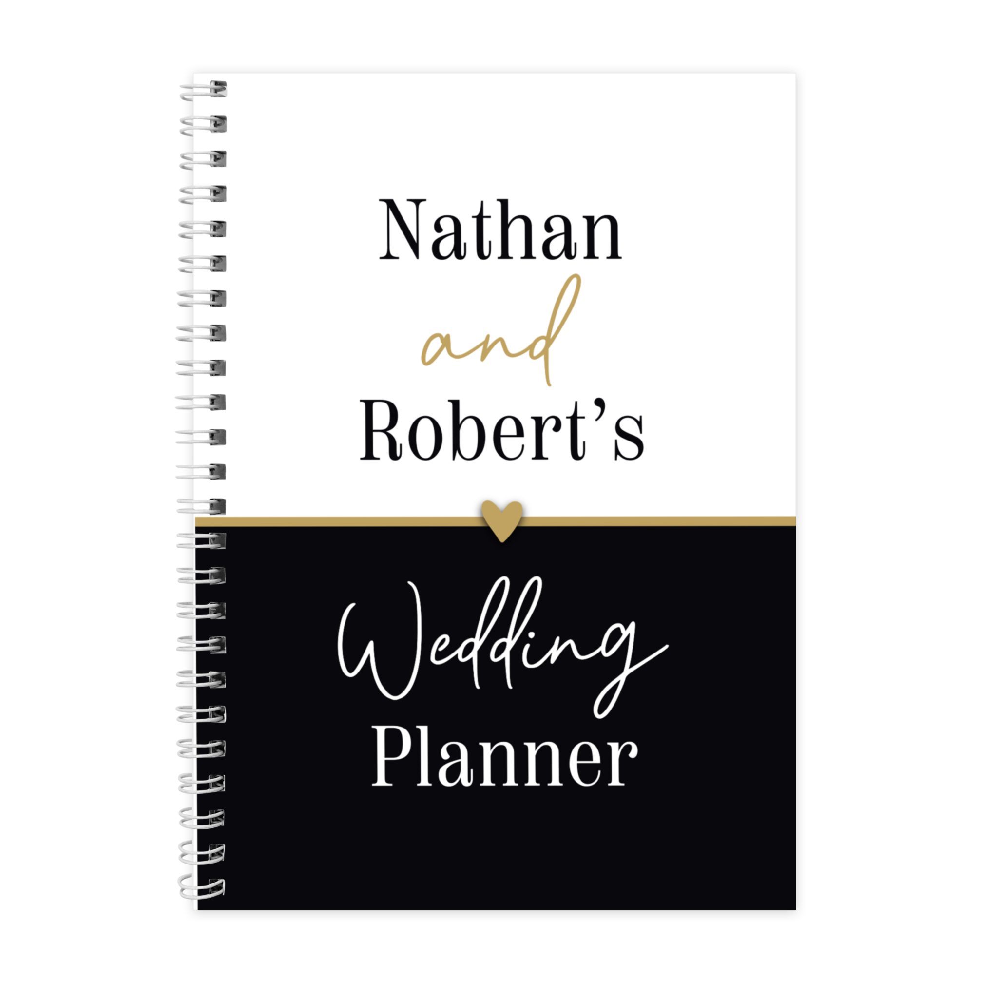 - This elegant A5 wedding planner features a timeless black and gold theme.