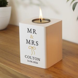 - You can personalise this tealight holder with up to 4 lines of text, as below Lines 1 & 2 – 3 characters per line