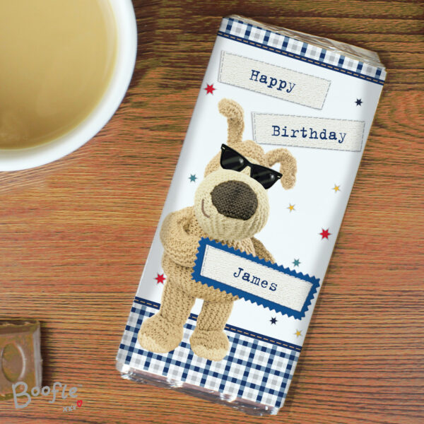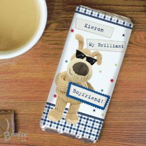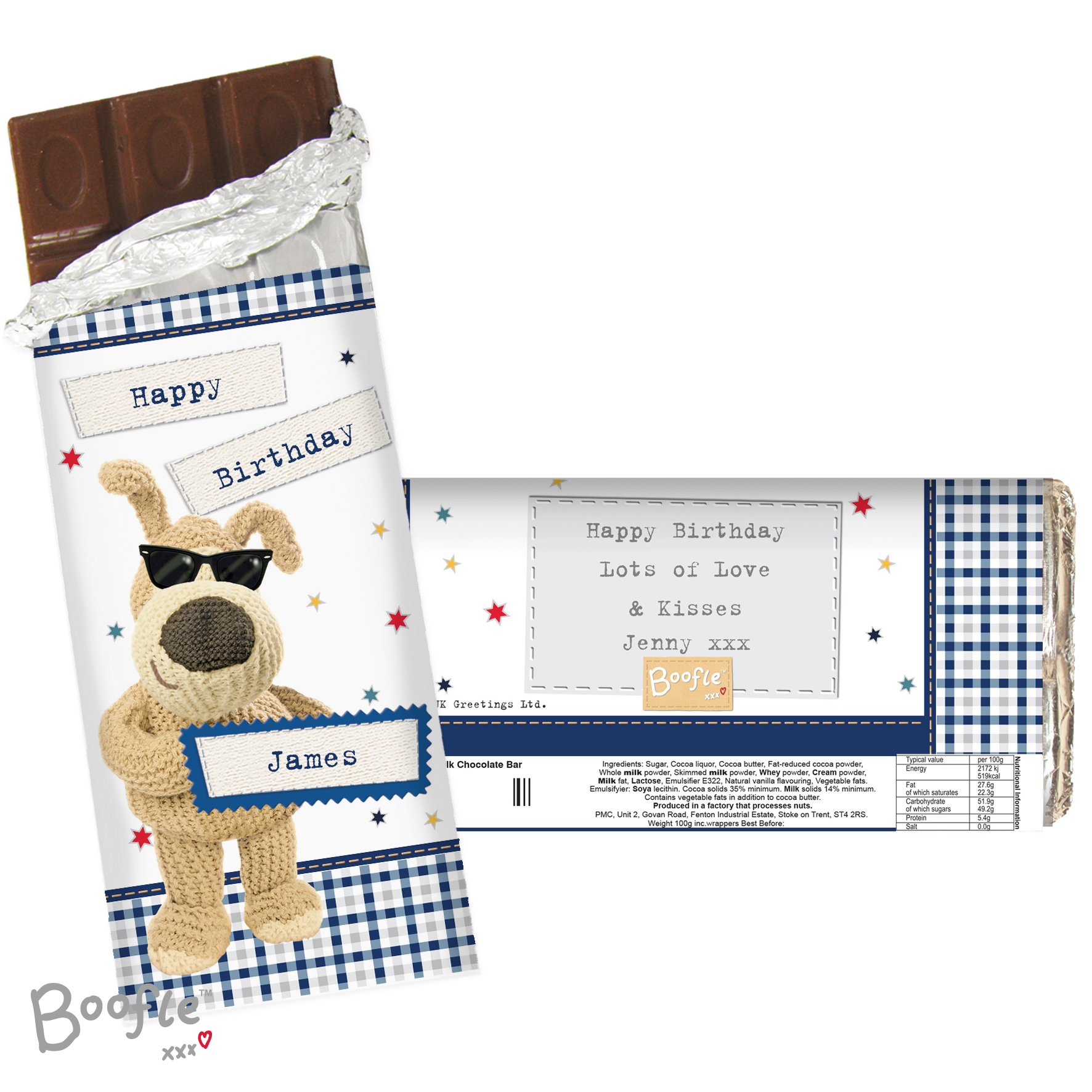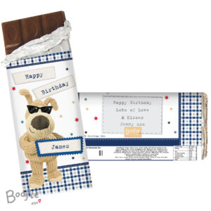 The front of this chocolate bar can be personalised with a message over 3 lines of text, with up to 15 characters per line.