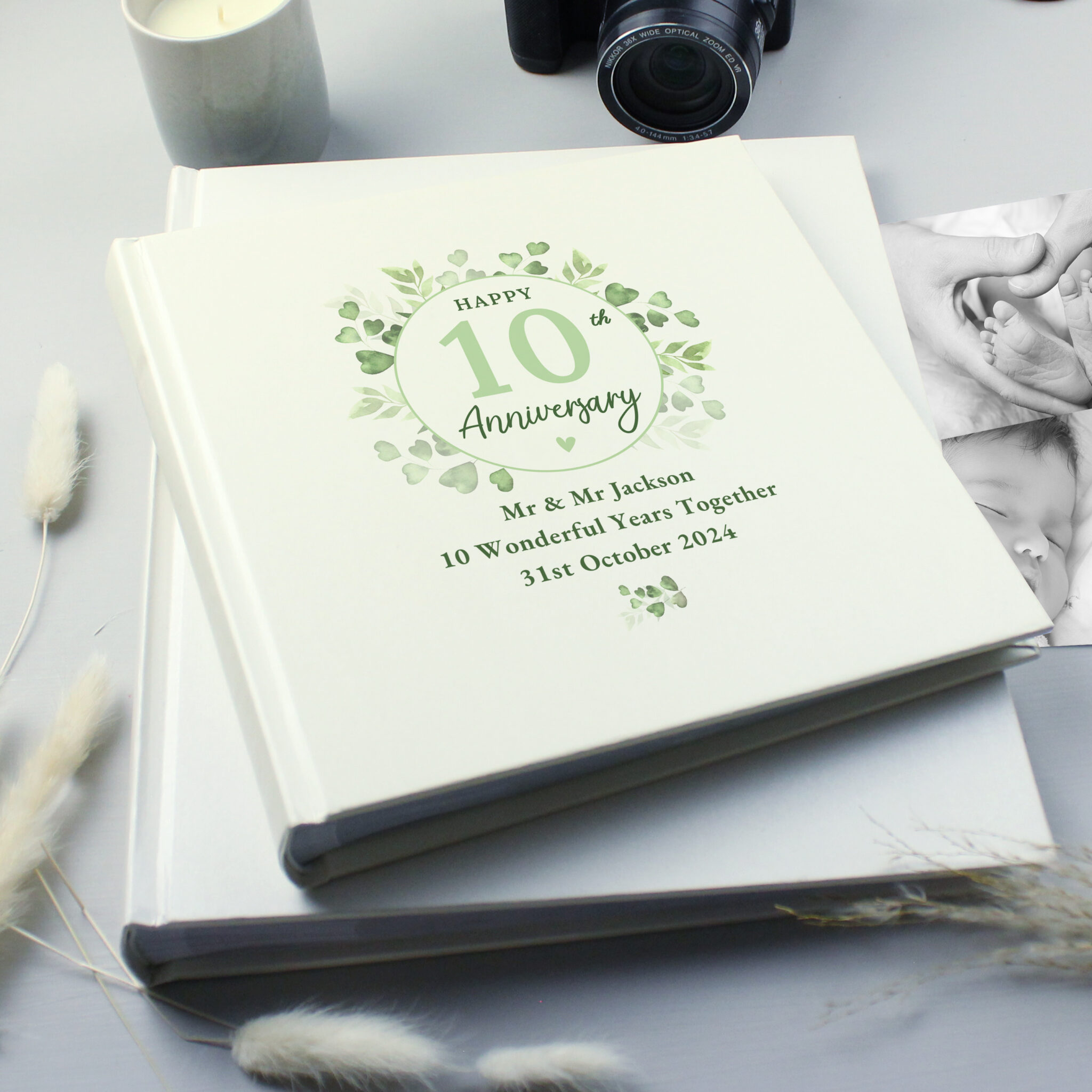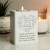 - Featuring our botanical design, you can personalise with an Anniversary number, e.g. 25 and a special message, over 3 lines of 30 characters per line.