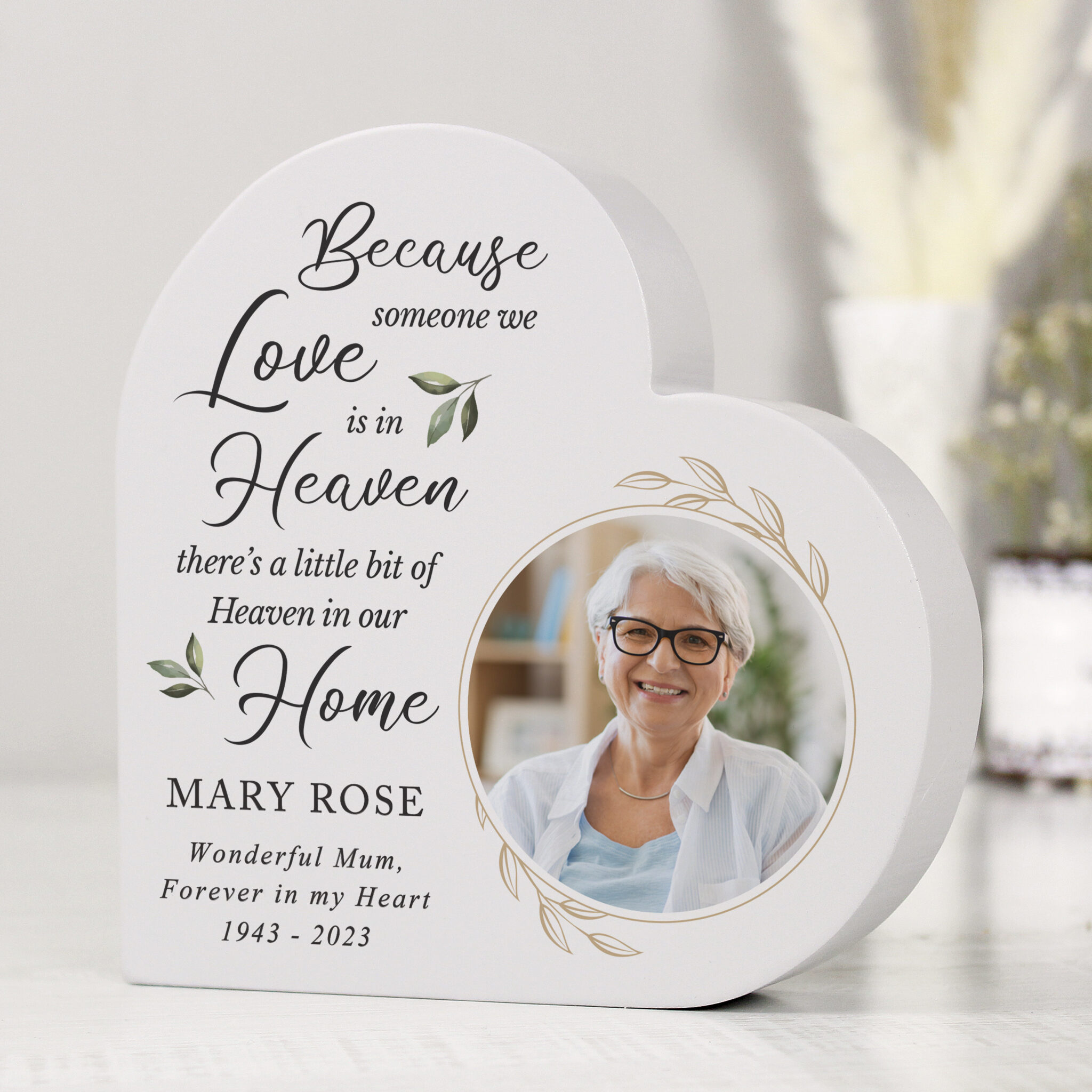 Personalised Botanical Memorial Photo Upload Free Standing Heart Ornament