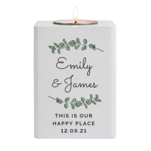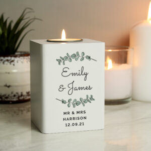 This gorgeous Personalised Botanical White Wooden Tea Light Holder is a fantastic gift for any occasion.
