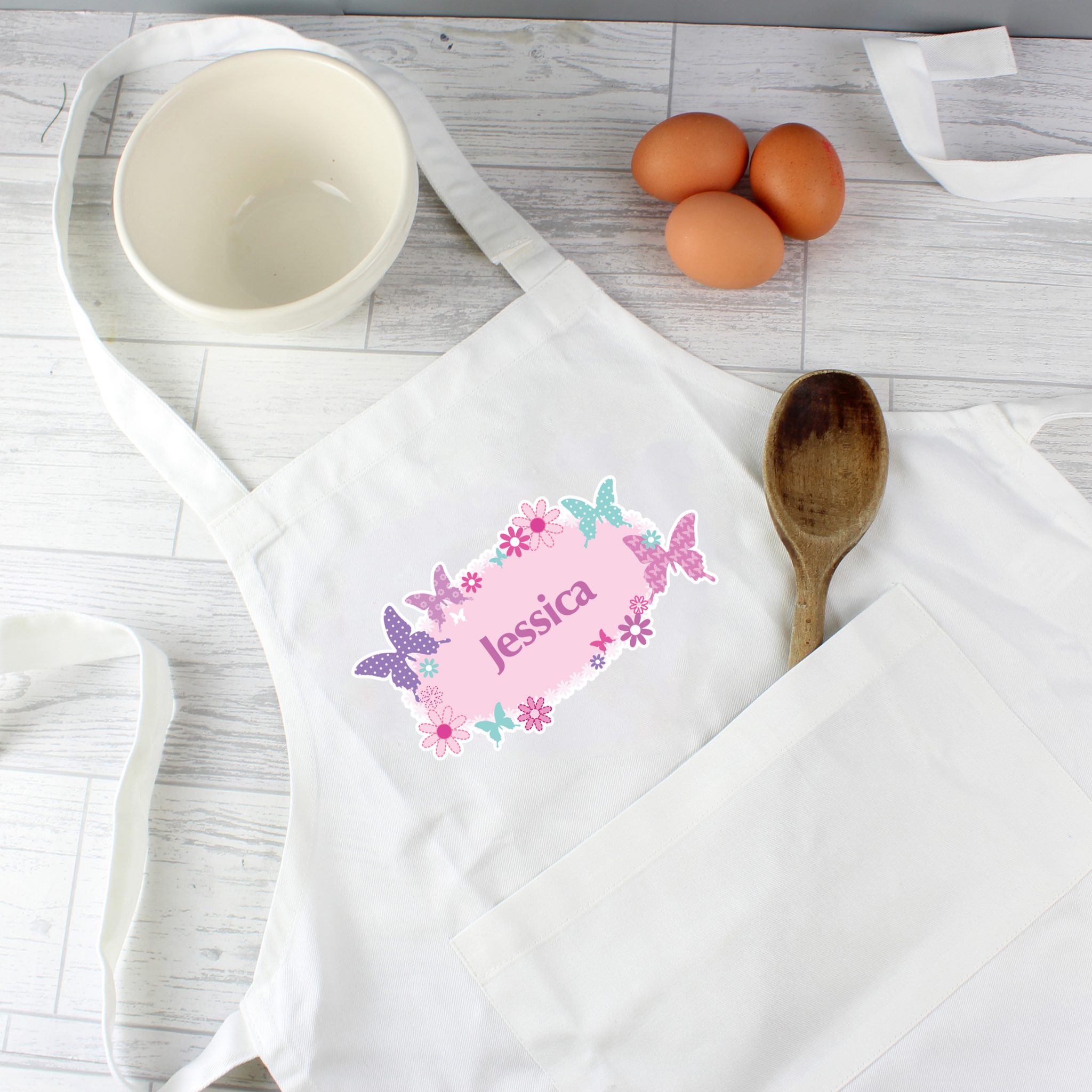 - Personalise this Butterfly Child’s Apron with a name up to 12 characters.