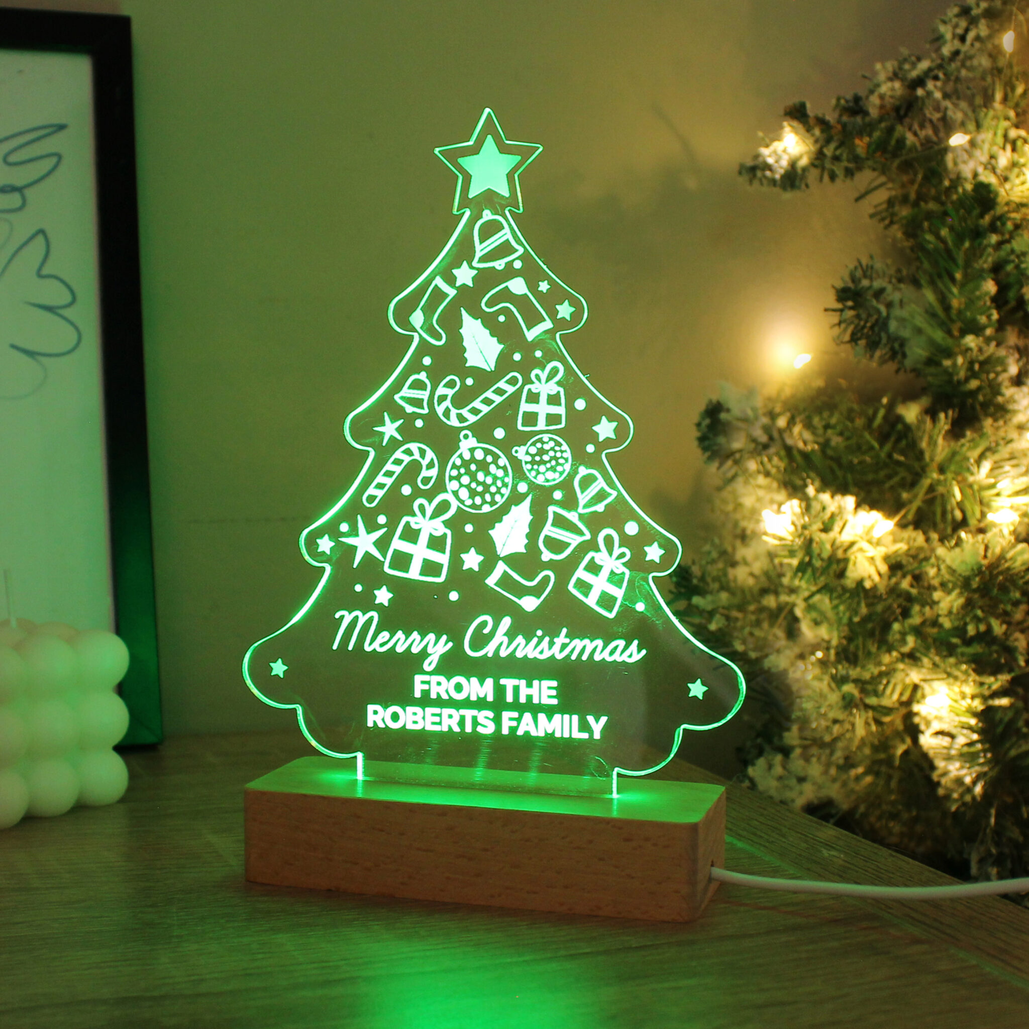 This personalised tree LED light is perfect for Christmas.