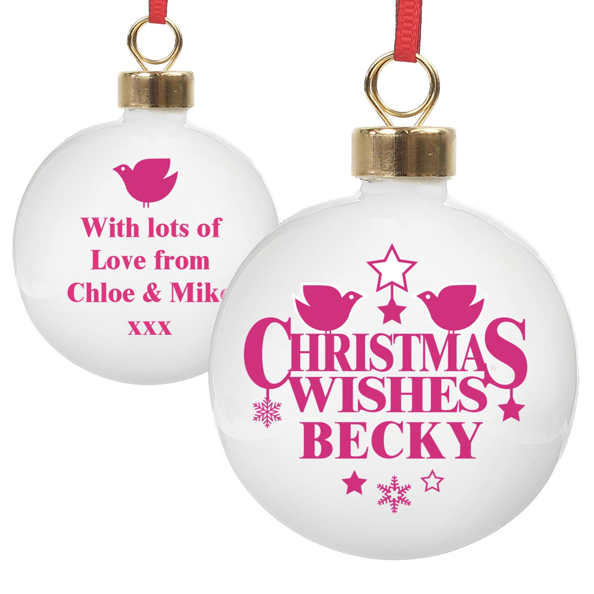 Personalise this Christmas Wishes Bauble with a name up to 12 characters on the front.