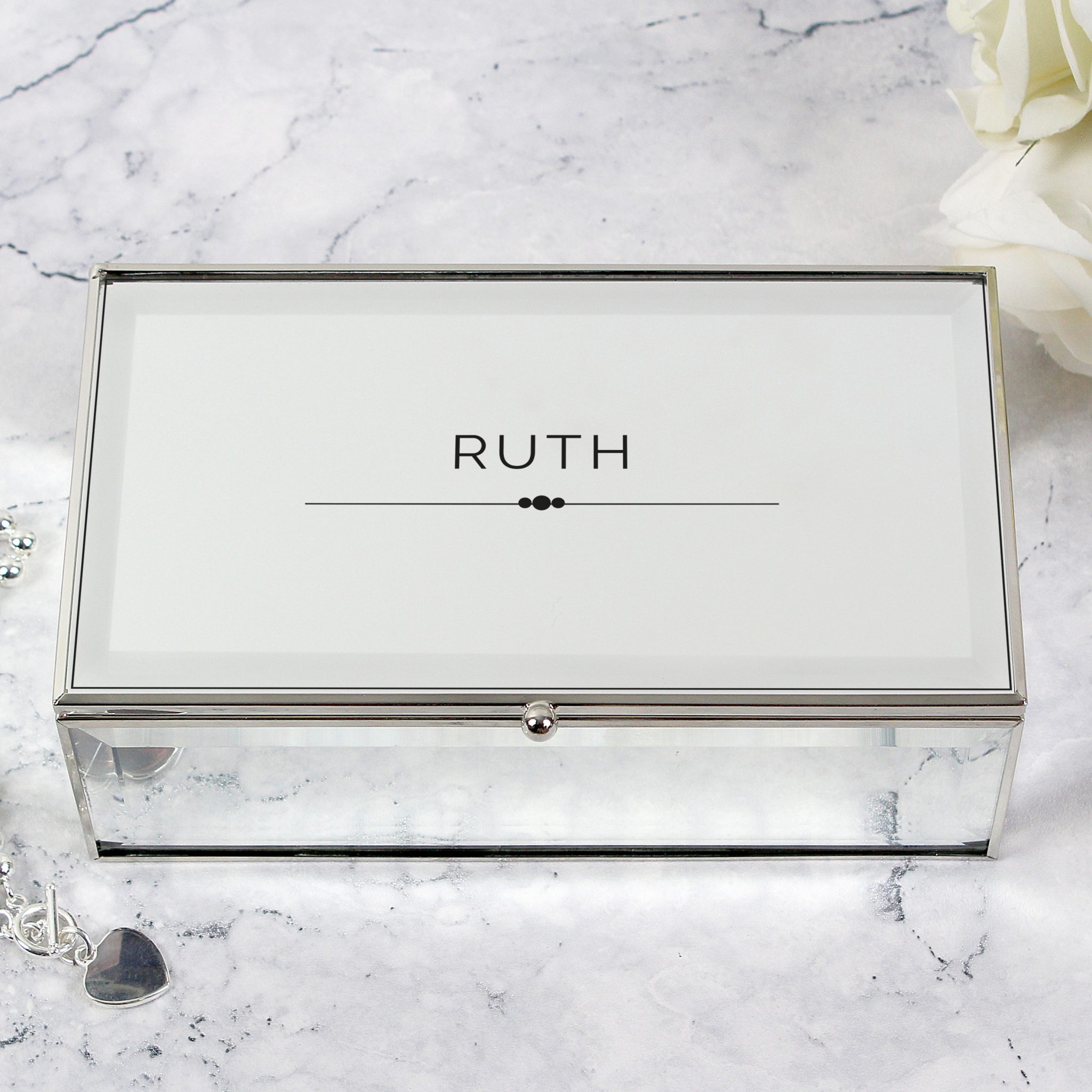 This clean modern jewellery box with mirrored finish, features three compartments to store your jewellery.