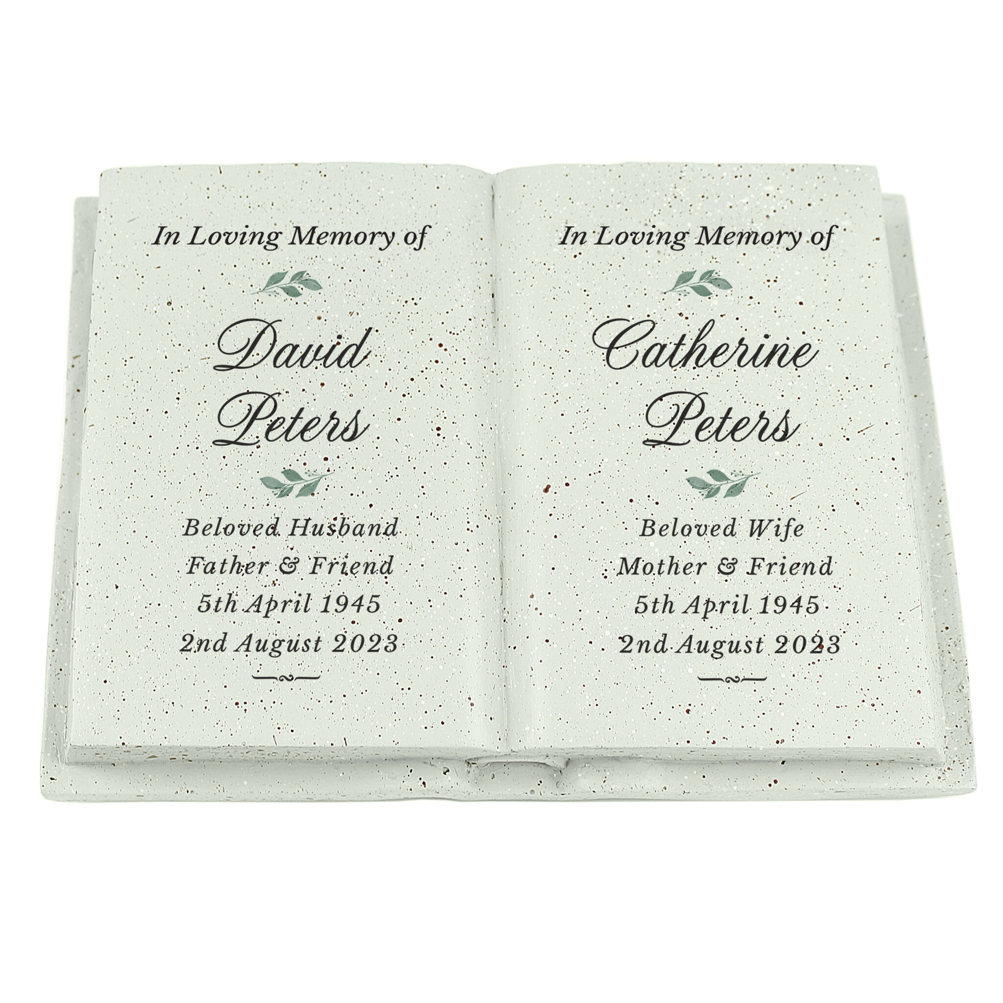 - Personalise this in Couples In Loving Memory Resin book with the following: Left Side
