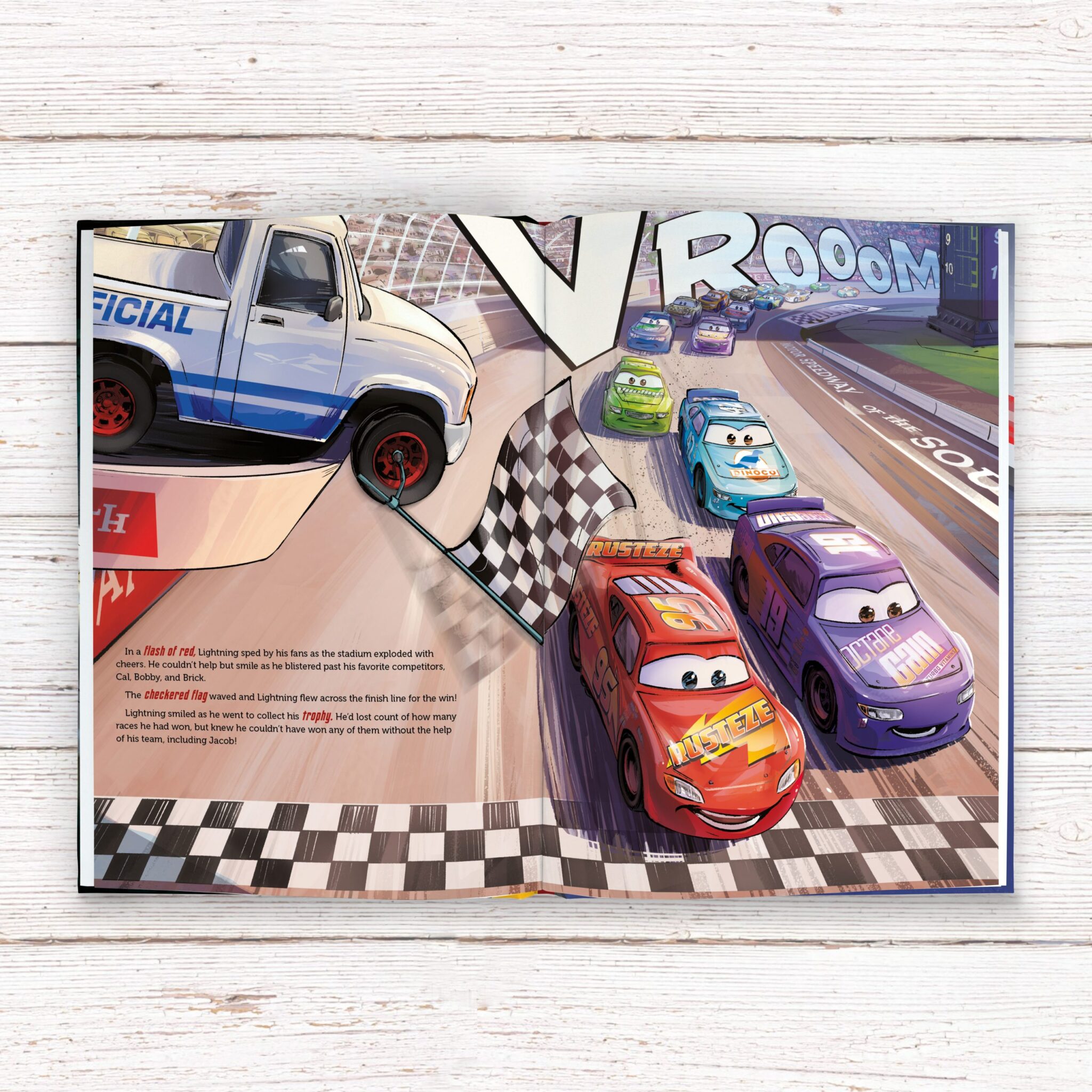 The first Cars film was released in 2006, and over ten years later, its popularity has rocketed, leading to two sequels. This wonderful book faithfully recounts the story of the second of these sequels: Cars 3. Lightning McQueen is again at the very forefront of the story, but this time around he finds himself being outpaced by a newer generation of cars with hi-tech training methods. With his fellow generation of racers retiring, Lightning must call on expert racing trainer Cruz Ramirez to help him beat Storm and the rest of the next-gen racers, and to keep his career alive! This book is ideal for any racing enthusiasts and fans of the Cars franchise. To put this book in pole position, the recipient’s name will appear throughout the story, and their name and a personal message can also be added to the opening page.
