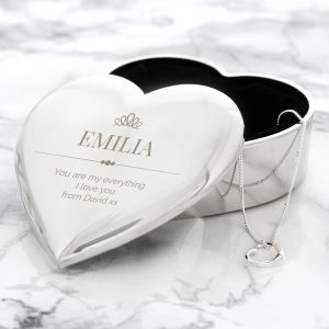 Be the first to review “Personalised Elegant Crown Heart Trinket Box & Sterling Silver Necklace Set” Cancel reply