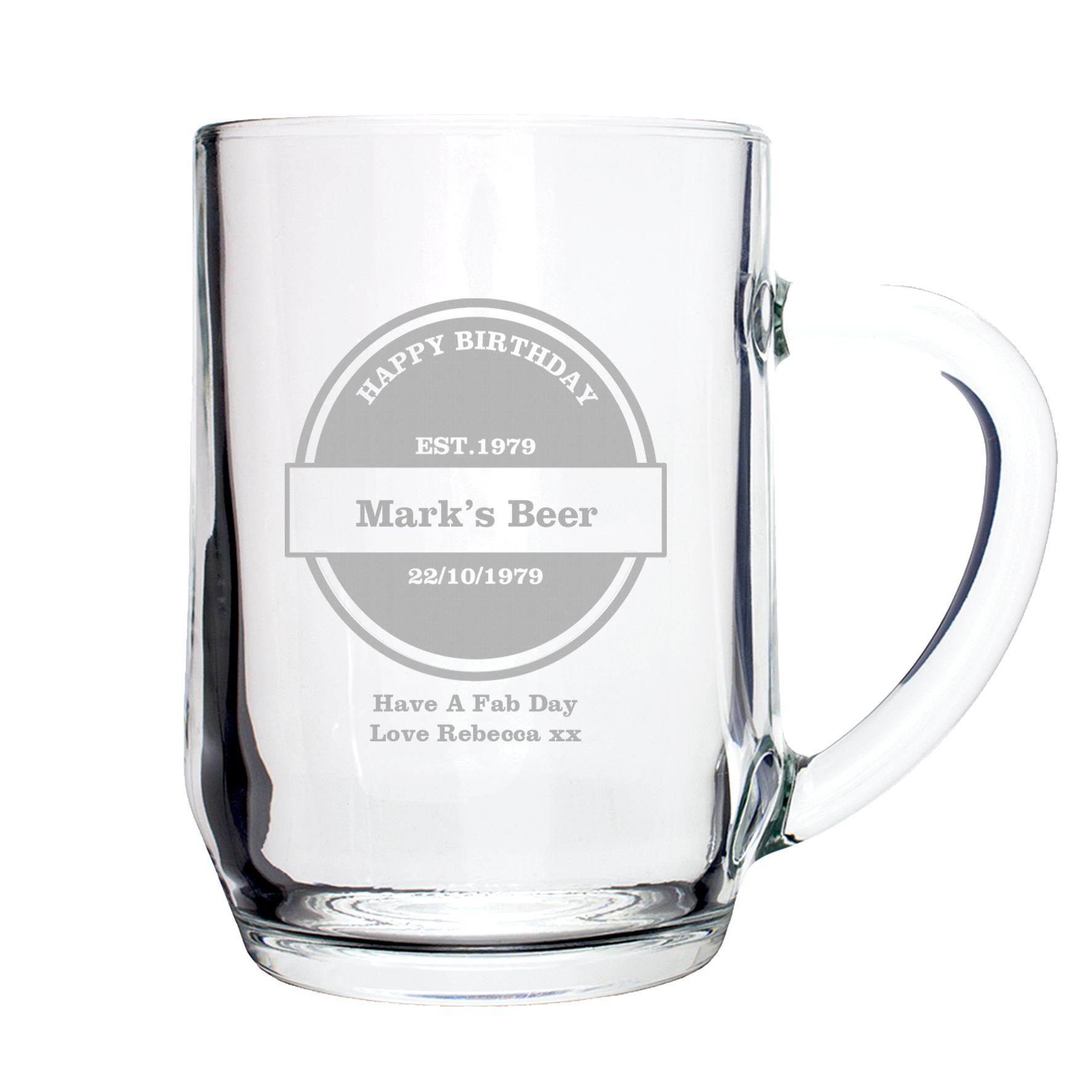 Personalise this Beer Label Tankard with a message up to 20 characters and a year.