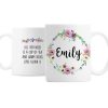 - The front of the mug can be personalised with a message up to 20 characters long and a name of up to 12 characters including spaces and punctuation.