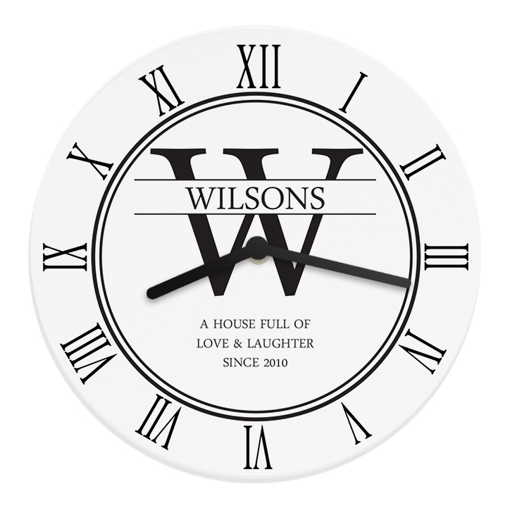 - You can personalise this clock with up to 5 lines of text as follows- Initial – 1 character Line 1 – up to 15 characters (Surname)