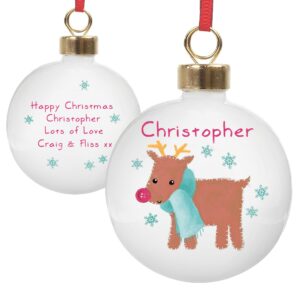 Personalise this Felt Stitch Reindeer Bauble with a name up to 12 characters on the front.