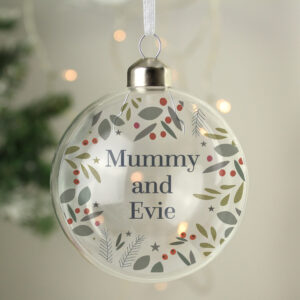 This Personalised Festive Christmas Glass Bauble is a great way to add a personal touch to the Christmas tree.