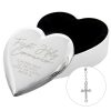 - The Heart Trinket Box includes a set of Rosary Beads presented in an Organza Bag Rosary beads are approx. 46.5cm in length Trinket is nickel plated.