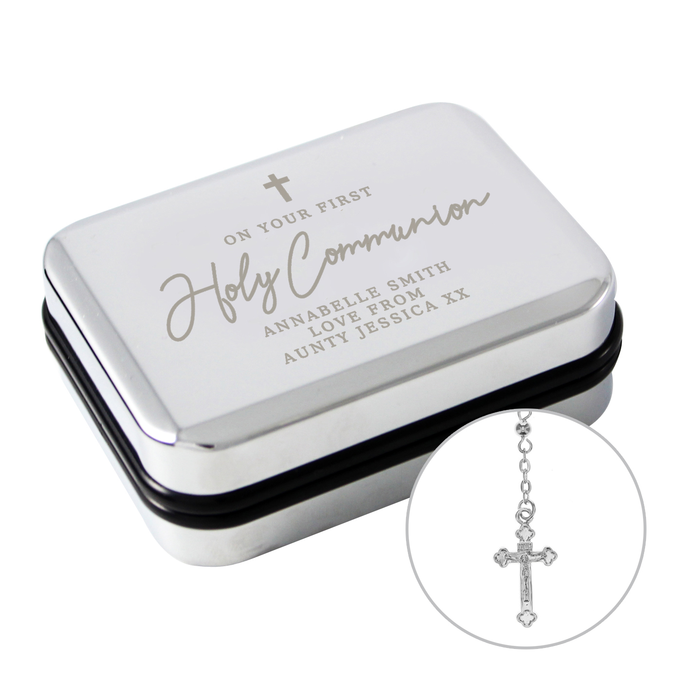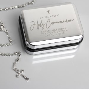 Personalised First Holy Communion Rosary Beads and Cross Trinket Box