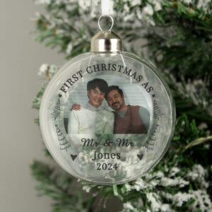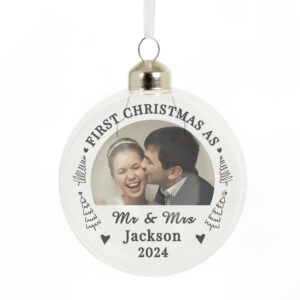 Personalised First Married Christmas Photo Upload Glass Bauble