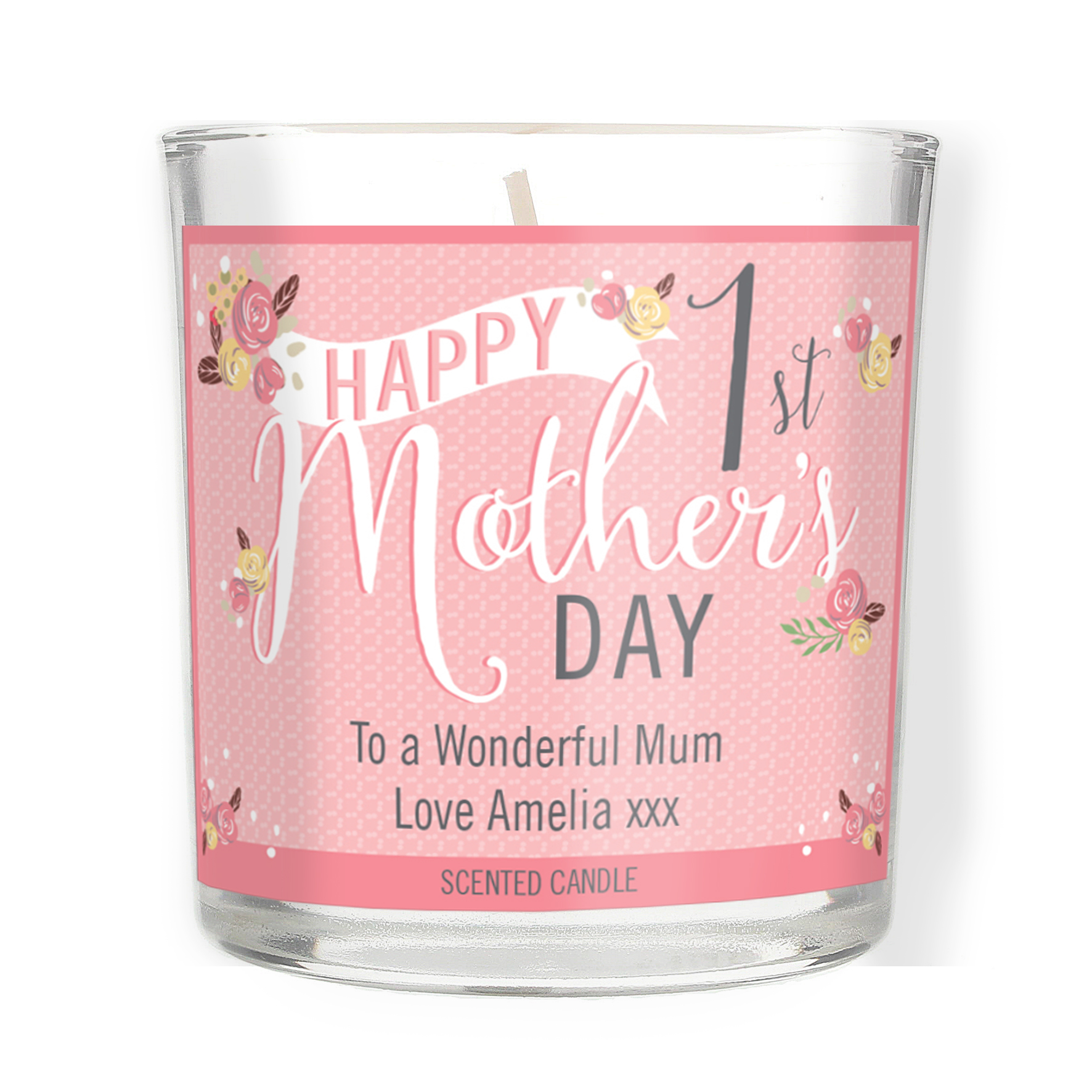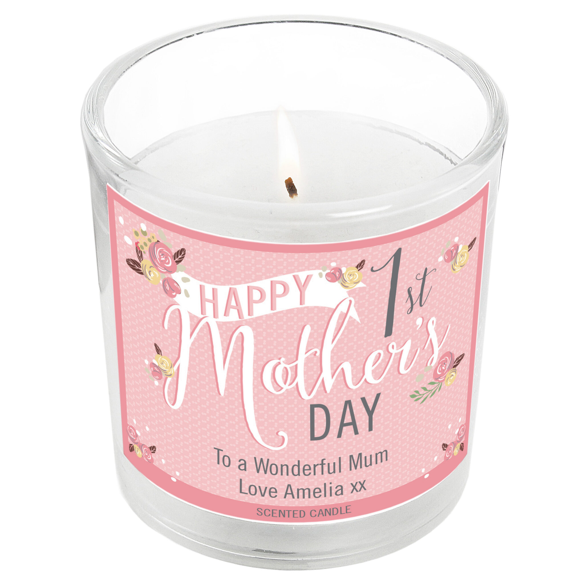Personalised Floral Bouquet 1st Mothers Day Scented Jar Candle