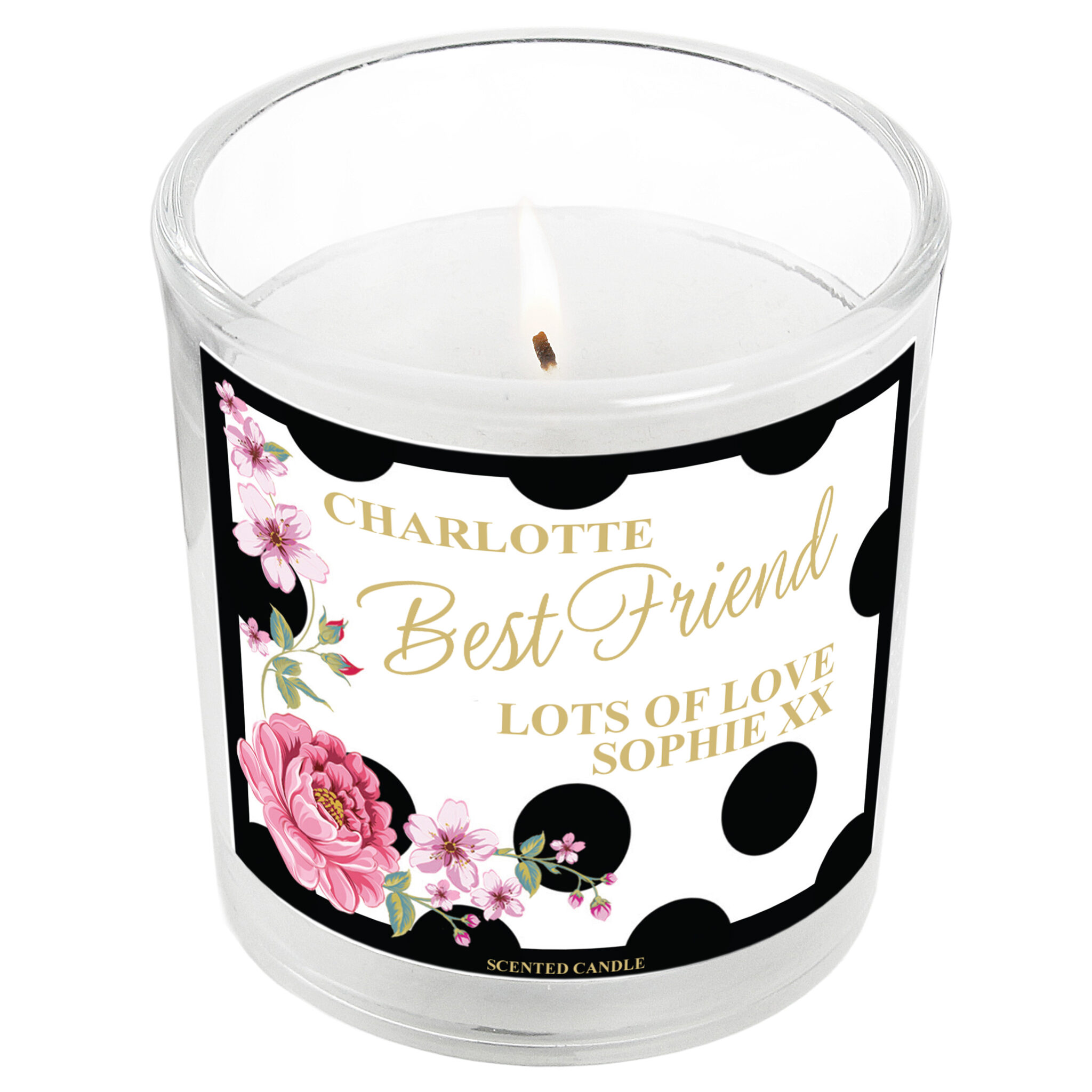 Personalise this Floral Dot Scented Candle with any message over 4 lines of up to 15 characters per line.