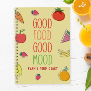 - Add your personalisation to the front cover underneath the fixed text “Good Food Good Mood” using up to 25 characters.