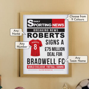 This personalised football signing newspaper framed print is perfect for any football lover!