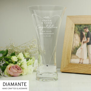 Personalised Free Text Botanical Hand Cut Diamante Heart Vase